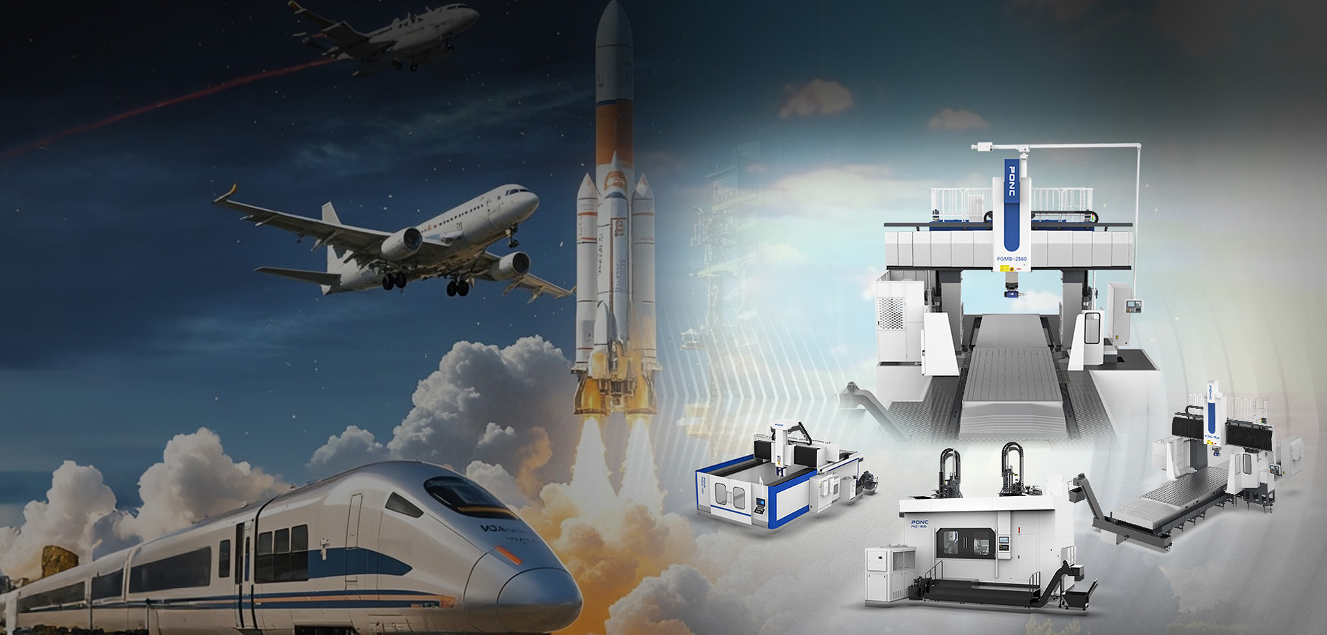 針對航空行業中多種金屬材料的復雜曲面加工,普恩克推出橋式五軸龍門系列,可配置不同五軸頭,滿足大去除量、高轉速、高精度的切削需求。針對大型機翼、機身結構件和飛機模架等大型工件的加工需求,普恩克推出超大型動柱式龍門,x軸行程可達30米。